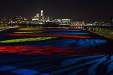 Lighting&Sound America Online - News: As an open space to accommodate community events and recreational activities, Tom Hanafan River's Edge Park sits on the Missouri River, creating a border between Council Bluffs, Iowa and Omaha, Nebraska. Artist Dan Corson recently designed a massive light show for the park, complete with complex characters and simple, intuitive interactive games that spans across the park's five acres. Harman's Martin Professional light fixtures were installed by Bandit Lites to illuminate the artist's vision.