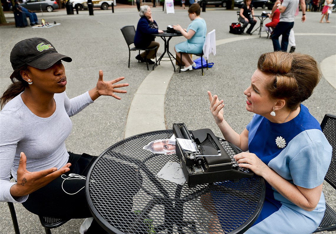 They typed and stamped dozens of letters in three hours, as passers-by stopped to gawk, take pictures or have their own messages transcribed.
